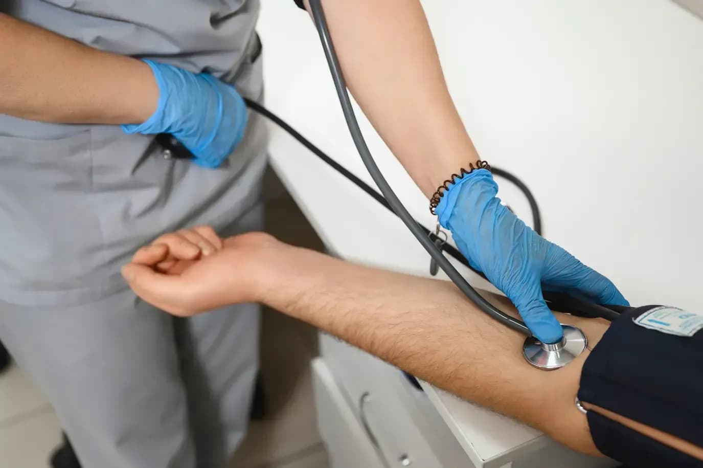 Осмотр и диагностика — доктор проводит первичный осмотр, собирает анамнез, измеряет артериальное давление, пульс, оценивает общее состояние и степень интоксикации организма